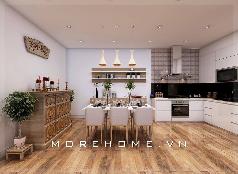 Mẫu bàn ăn gỗ hiện đại cho phòng bếp ăn chung cư