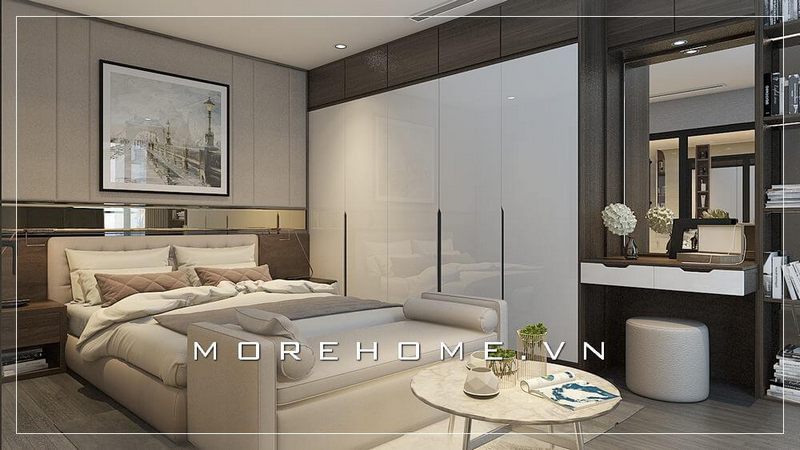 Trang trí nội thất phòng ngủ chung cư ấn tượng và nổi bật với mẫu giường ngủ gỗ công nghiệp màu trắng sang trọng
