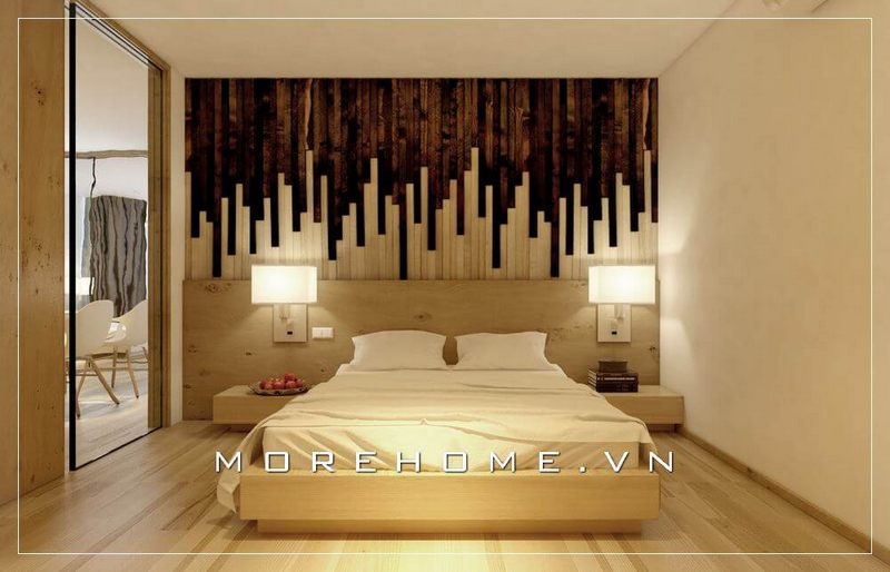 Thiết kế nội thất phòng ngủ chung cư hiện đại và trẻ trung với mẫu giường ngủ gỗ công nghiệp