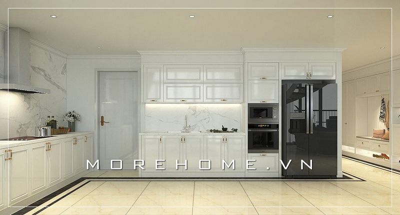 Morehome mang đến cho không gian sống của gia đình những mẫu tủ bếp đẹp và ấn tượng với phong cách thiết kế hiện đại, màu trắng.